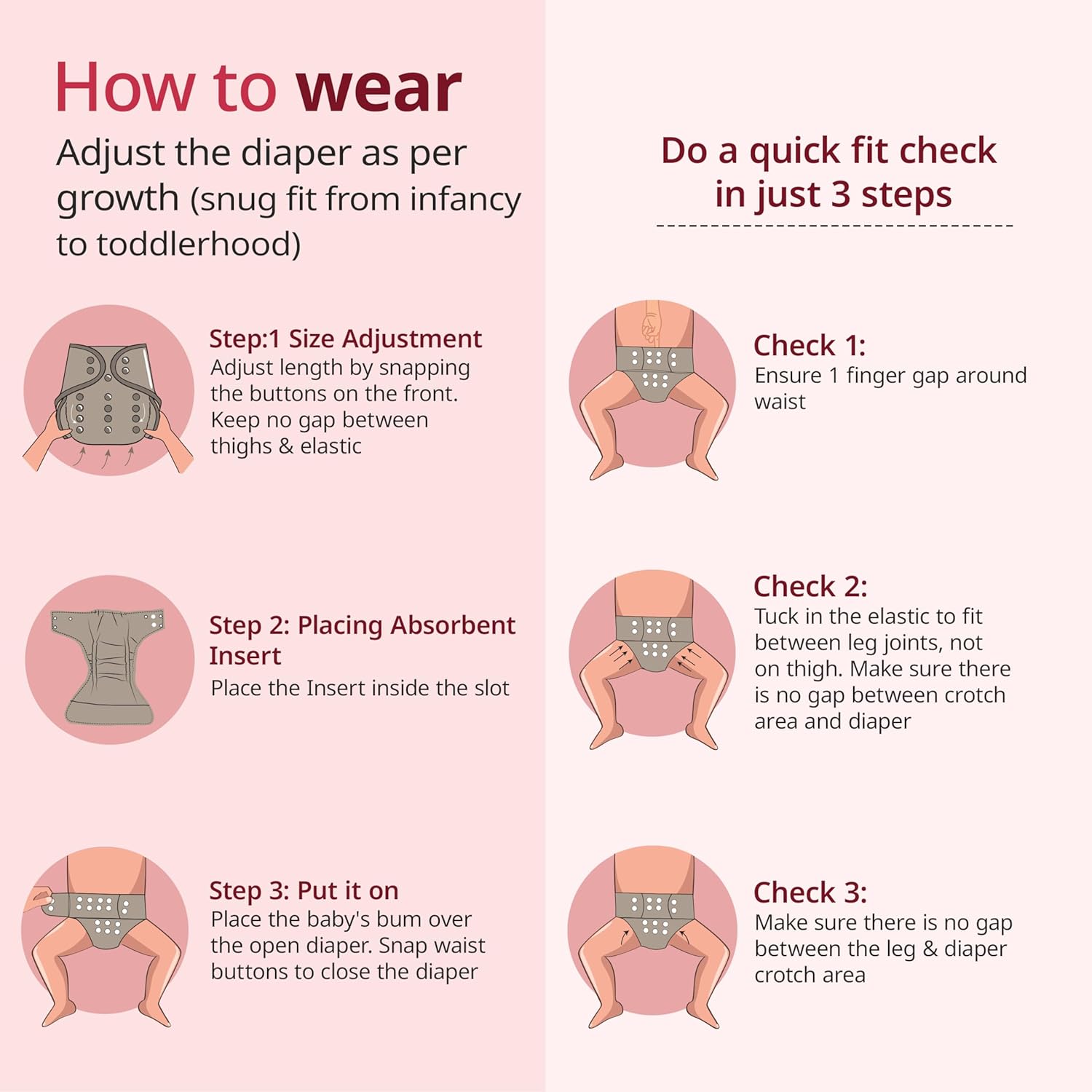 SuperBottoms BASIC Cloth Diaper Pack of 2 – Reusable Diaper for Babies (3 Months–3 Years), Adjustable & Washable LuvLap Reusable Bamboo Charcoal Baby Cloth Diapers – Soft, Leak-Proof LuvLap Diaper for Newborns & Toddlers