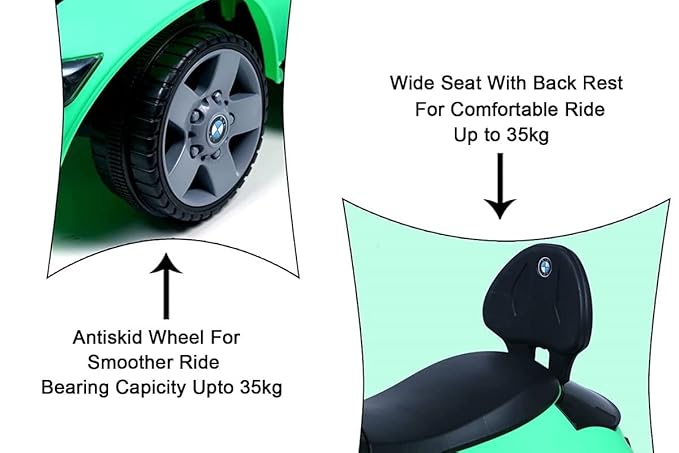 The Wrixty Baby Electric Battery Car is a fun and safe ride-on toy designed for toddlers aged 1 to 3 years. Powered by a 6V 5Ah rechargeable battery, this electric car offers 45 minutes to 1 hour of continuous play on a full charge. It features a foot accelerator for easy driving and can also be used as a push ride-on once the battery runs out. With a 25 kg load capacity, sturdy plastic body, and smooth design, it’s ideal for indoor and outdoor play. The built-in USB and Bluetooth MP3 music system adds entertainment, making it a great birthday gift option for young kids.